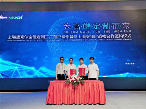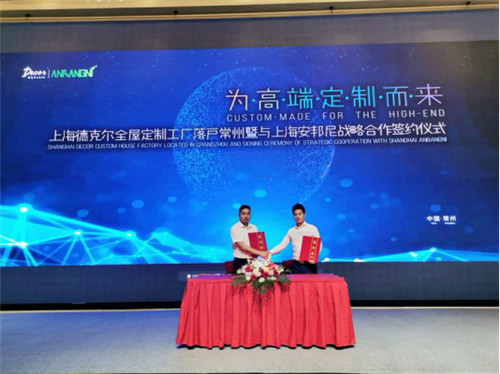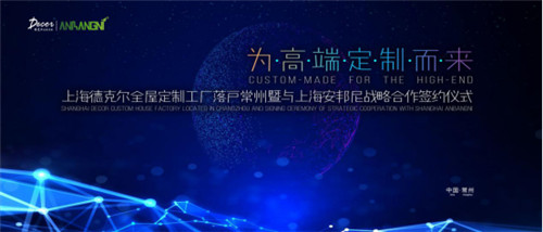 为匠造美好家居生活,上海德克尔全屋定制与上海安邦伲在武进九洲喜来登大酒店正式签署品牌战略合作协议,上海德克尔全屋定制总经理杨本敬与上海安邦伲总经理宫明军均出席了签约仪式,结成优势互补、强强联合的战略合作伙伴,并官方指定上海安邦伲为上海德克尔全屋定制常州工厂。