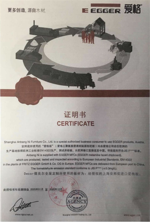 奥地利爱格是目前欧洲最大的板材厂,在欧洲有17家超大规模工厂,是全球唯一 一家做生产板材的百年企业,也是全球首个获得ISO9001/EN29001质量认证证书的板材制造商,拥有世界上最先进的现代化生产流水线和严格的质量检验体系,其板材产品达到了国际上针对甲醛释放环保标准的最高等级——F四星。